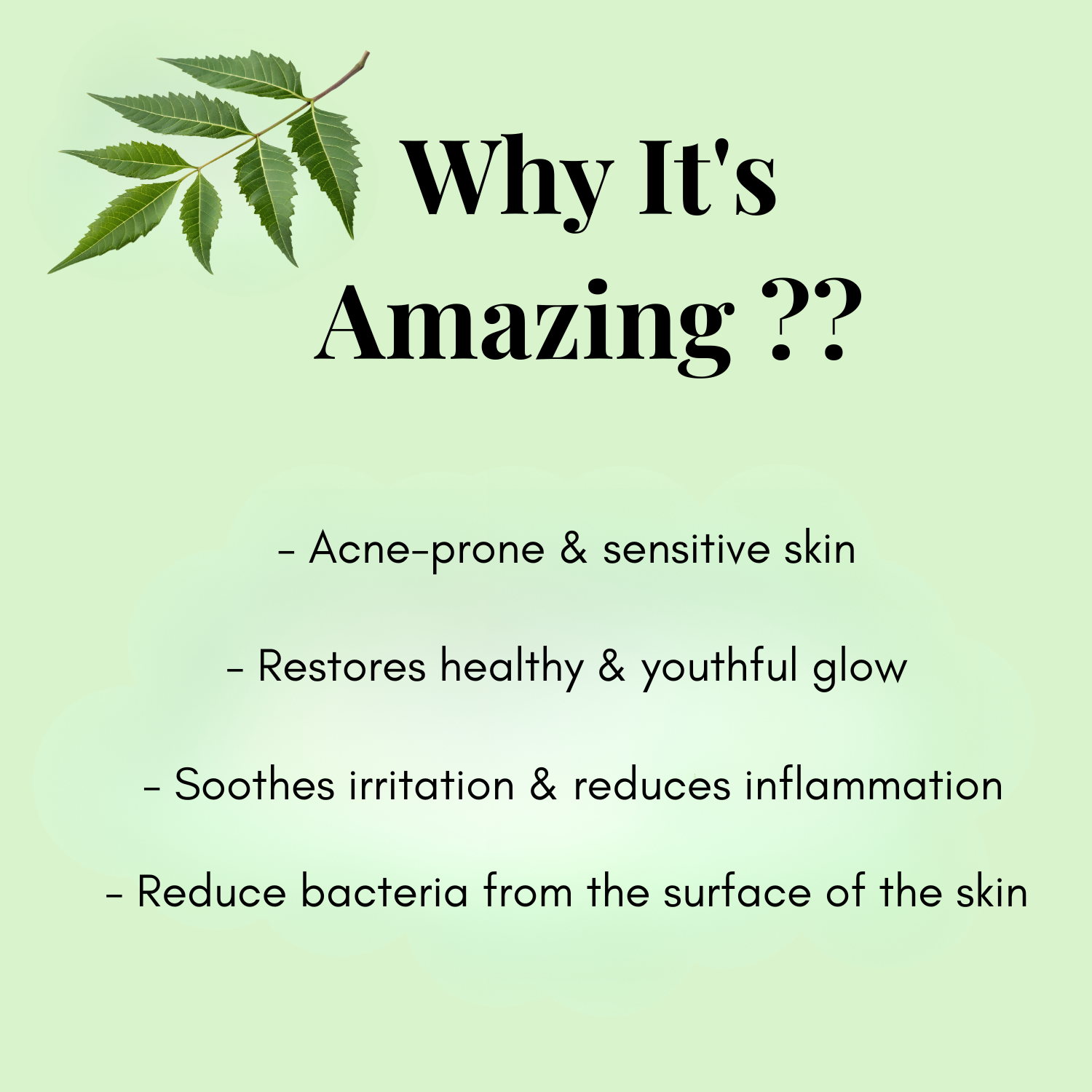 • مستخلص النيم: يساعد على تنقية البشرة ودعم مظهرها الأكثر نقاءً.