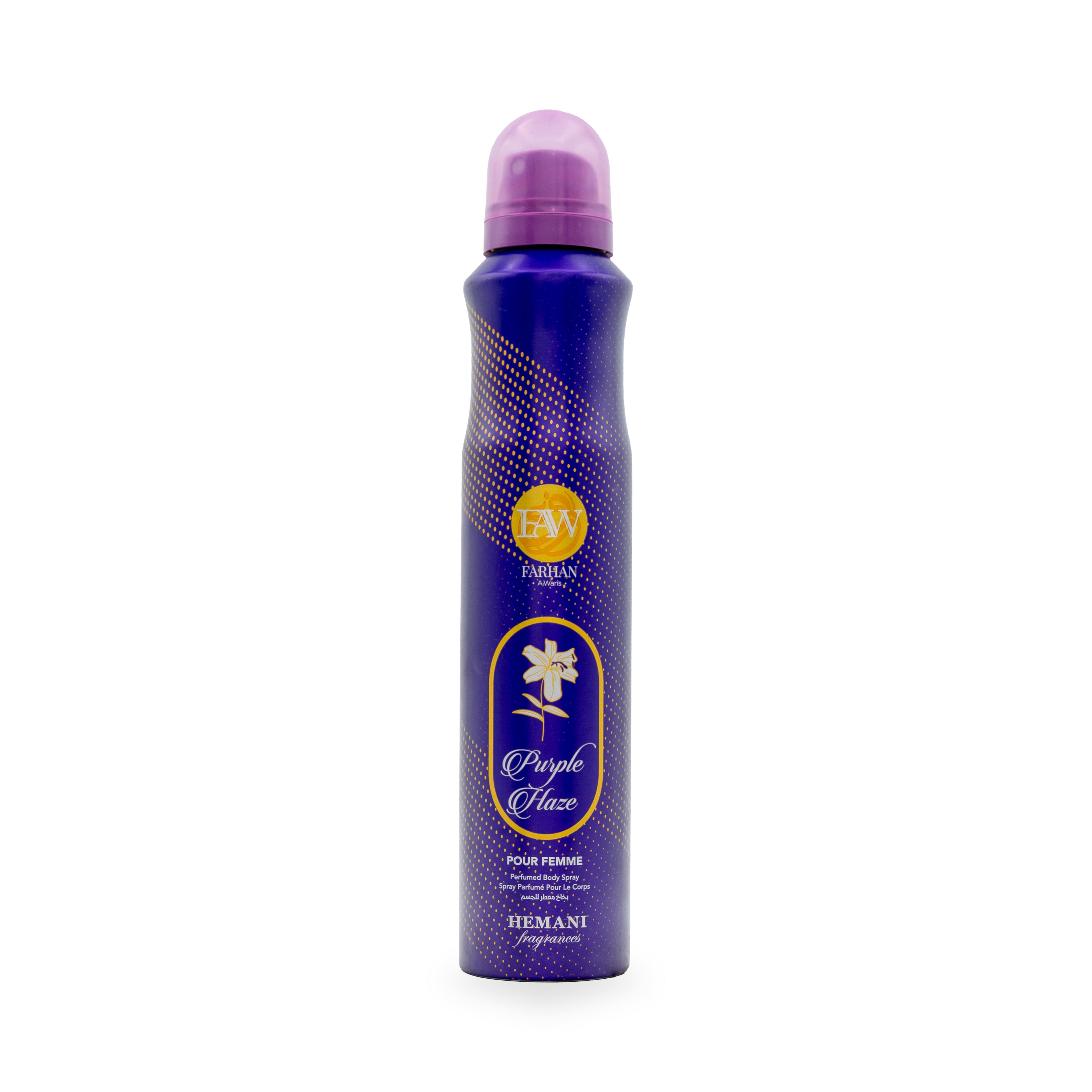 FAW Purple Haze Body Spray is part of the FAW Farhan A. Waris exclusive range of perfumed body sprays. The uplifting, refreshing scent helps awake your senses and keep you fresh throughout the day. It supports odor control and leaves a long-lasting fragrance that opens crisp and airy, blooms into soft florals, then settles into a warm, powdery-sweet finish.