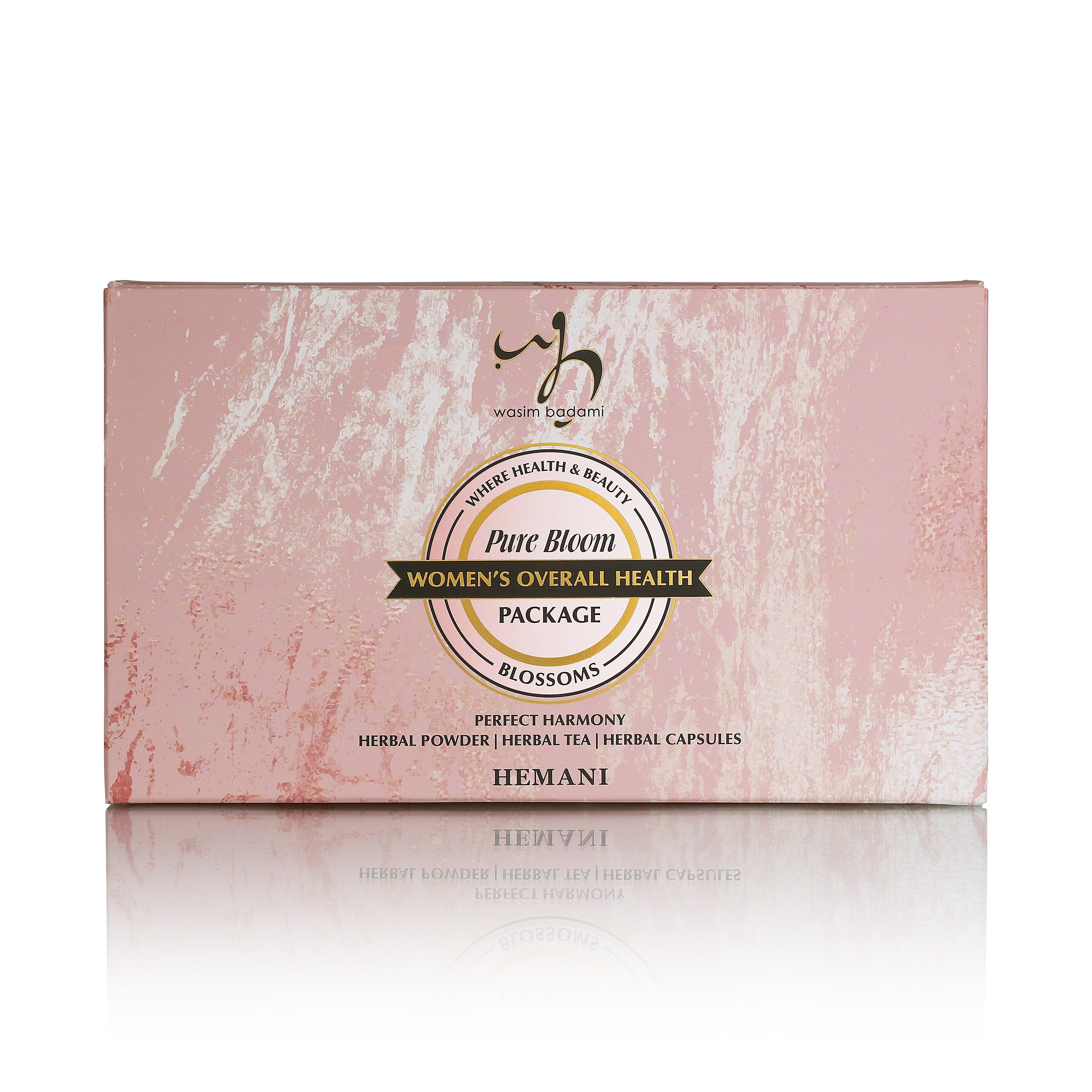 Support your body with the Pure Bloom Women’s Overall Health Package by WB by Hemani, a complete natural wellness set designed to nourish, balance, and revitalise. This all in one package includes specially formulated herbal powder, soothing women’s herbal tea, and Shatavari capsules, each selected to help support hormonal balance, general well being, and everyday health.